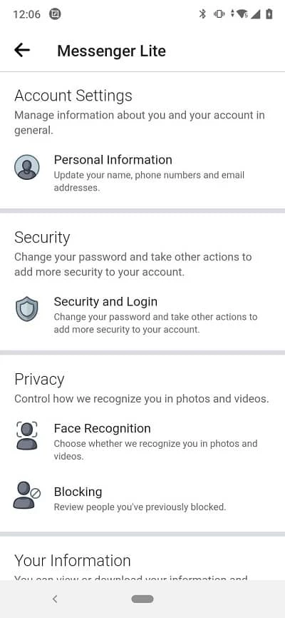 Messenger Lite'tagizlilik ve güvenlik özellikleri en önemlileridir ve görüşmeleriniz için kusursuz şifreleme bulacaksınız. Başkalarıyla güvenli bir şekilde sohbet etmenizi ve arama yapmanızı sağlar. Ayrıca, "Gönderilerinizi kimler görebilir ?", " İstenmeyen iletişimi engelle " gibigizlilik ayarlarını kullanarak uygulamanızı özelleştirebilirsiniz .